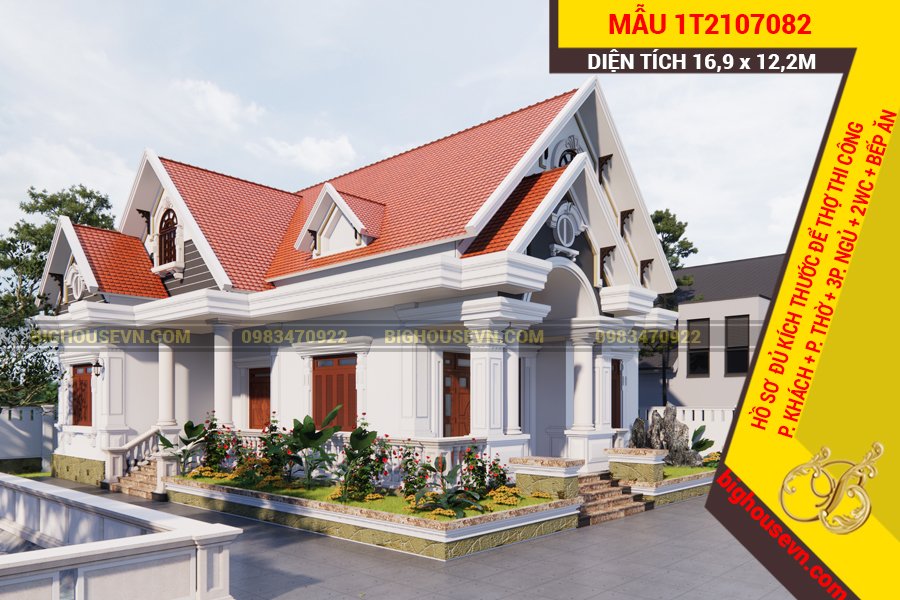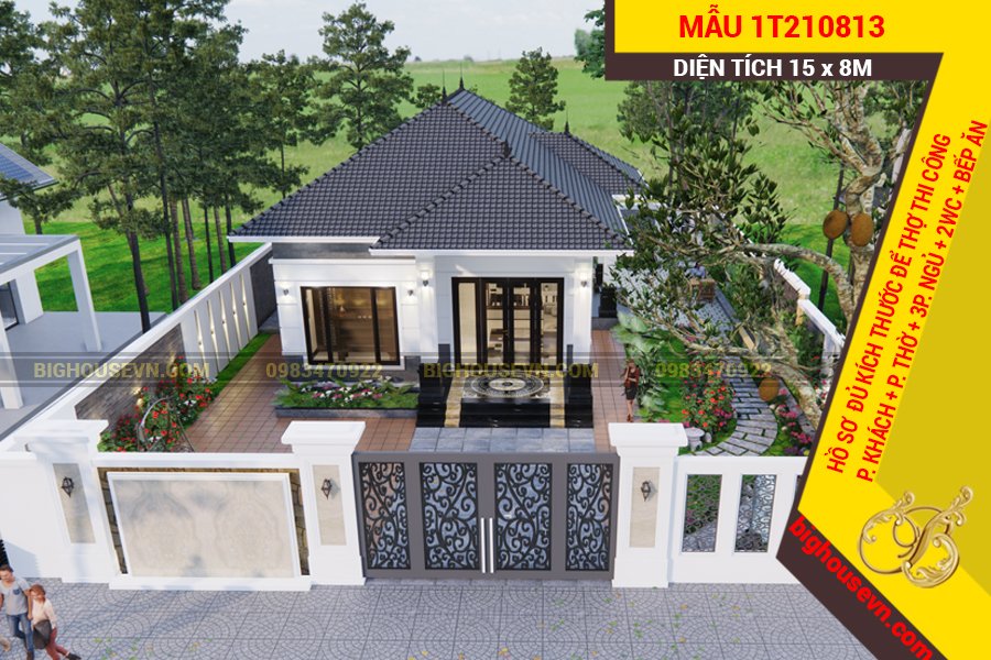 1. Mẫu nhà tân cổ 1 tầng rộng 16m