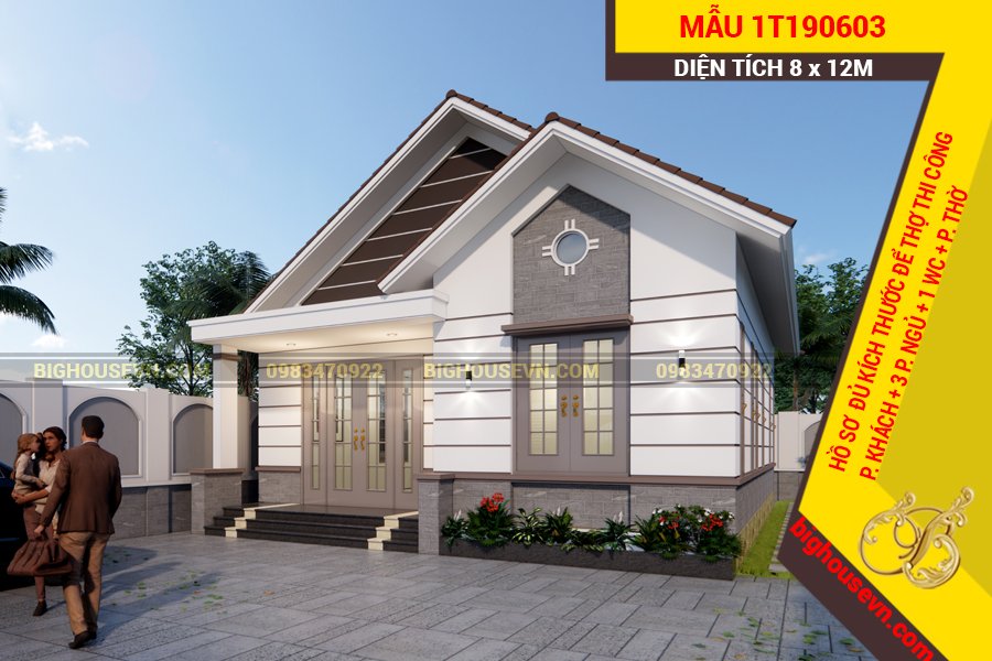 7. Mẫu nhà cấp 4 mái Thái 96m2 có 2 phòng ngủ
