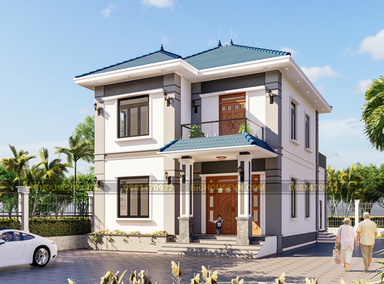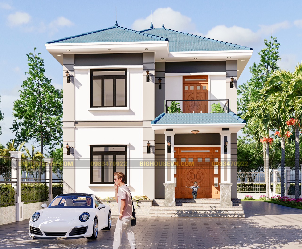 Thiết kế nhà 2 tầng mái nhật rộng 9m