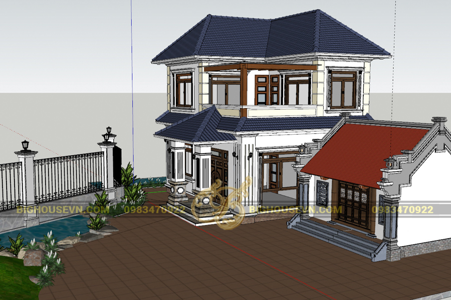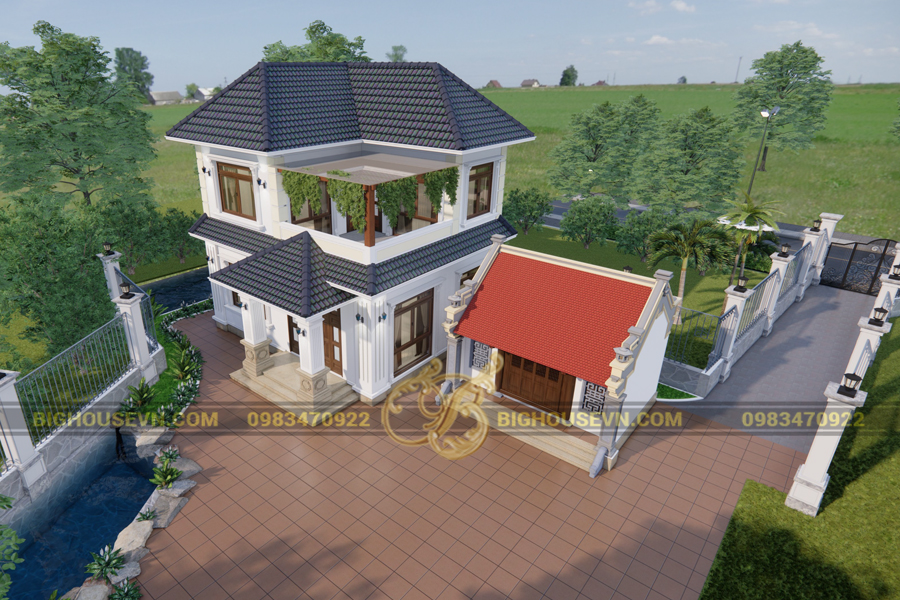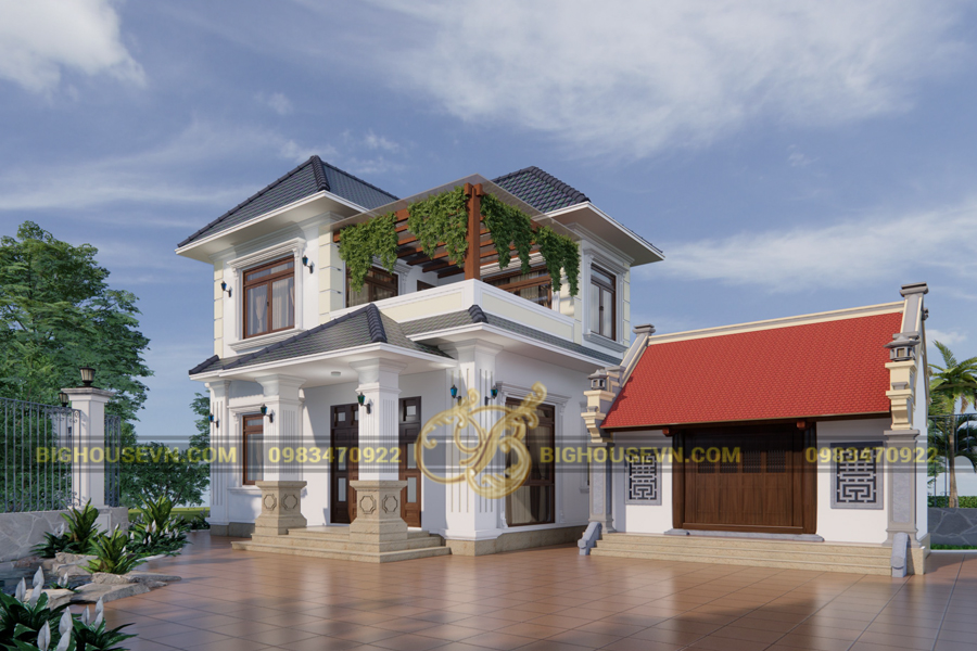 Thiết kế nhà 2 tầng mái thái và nhà thờ họ