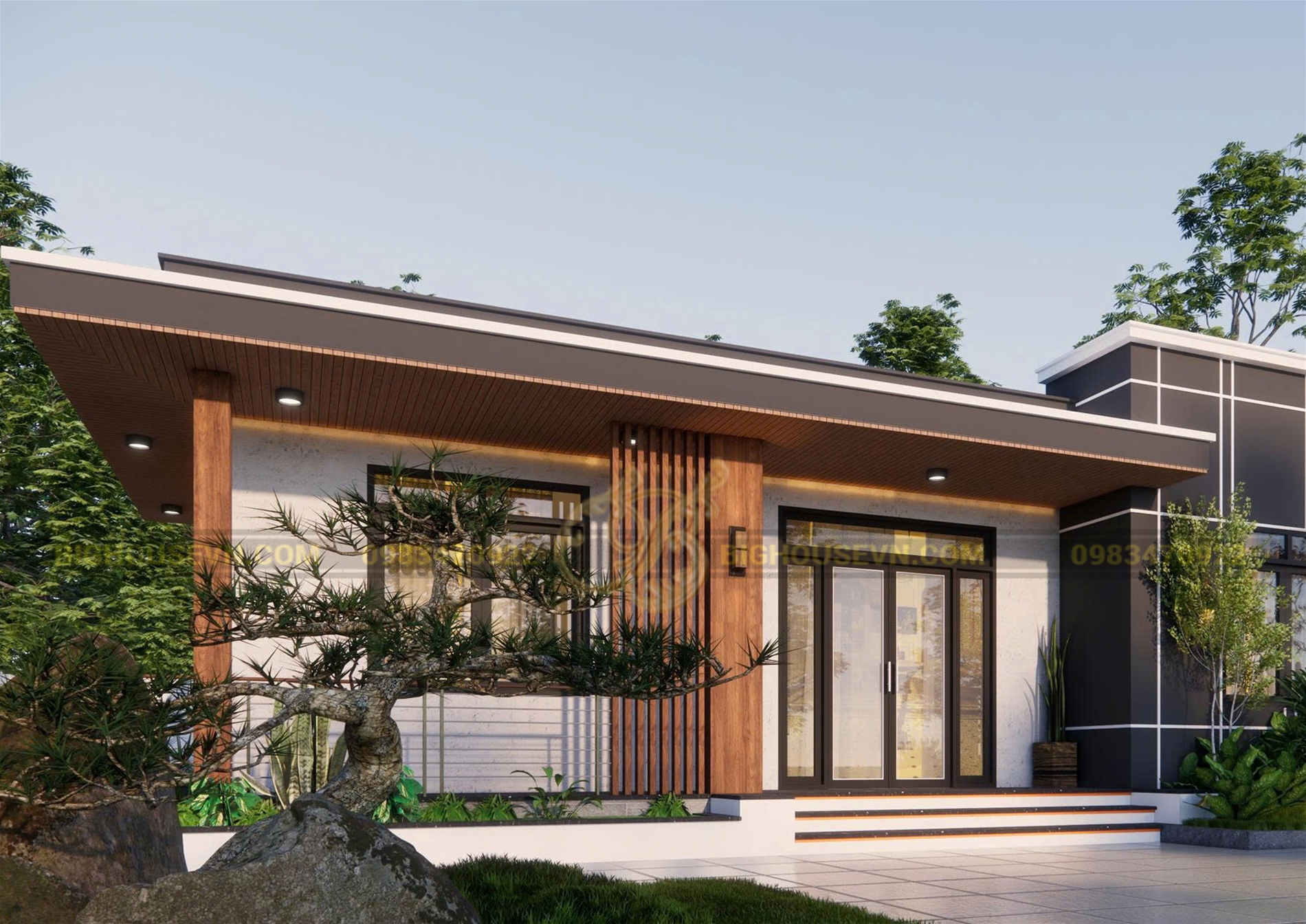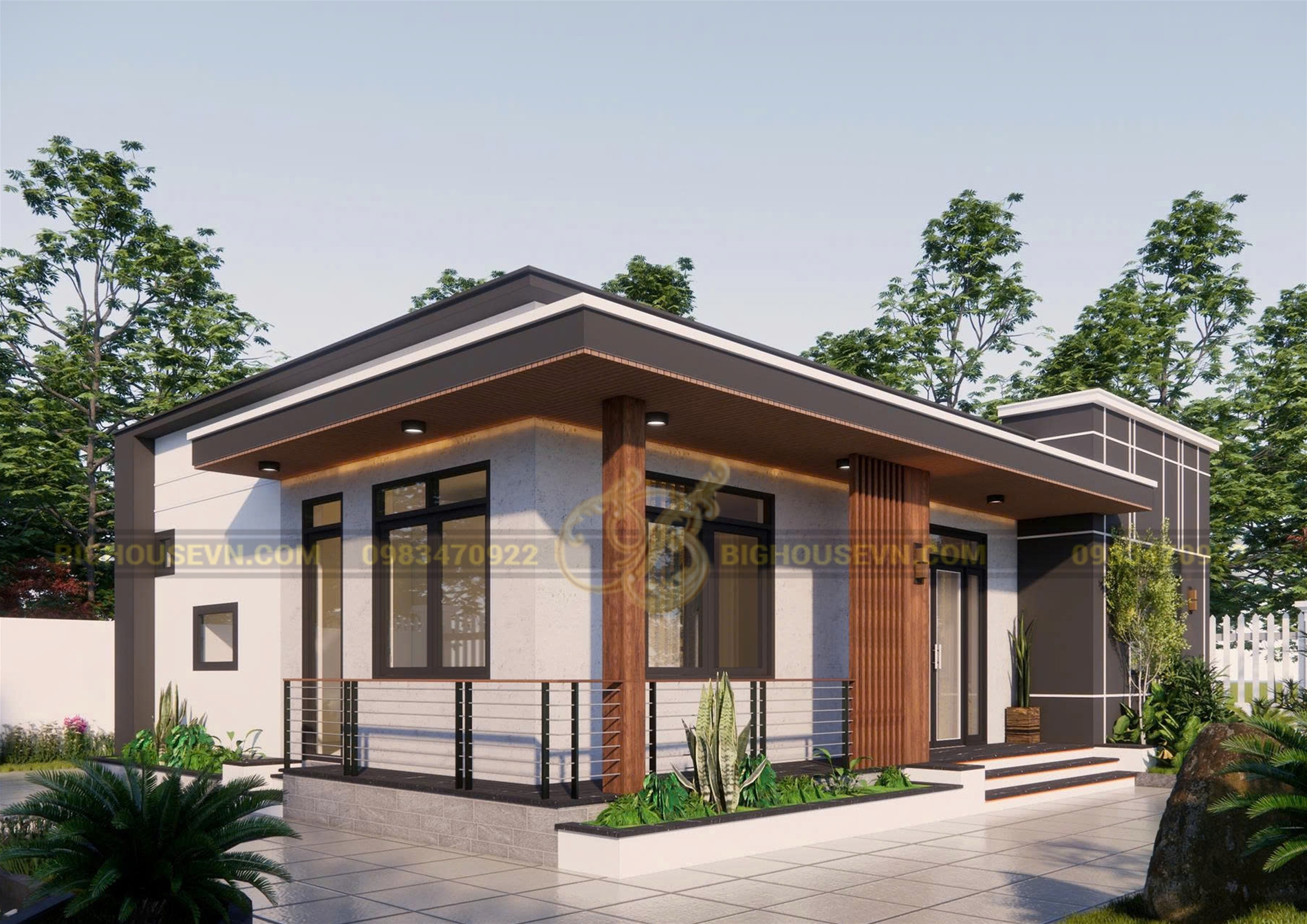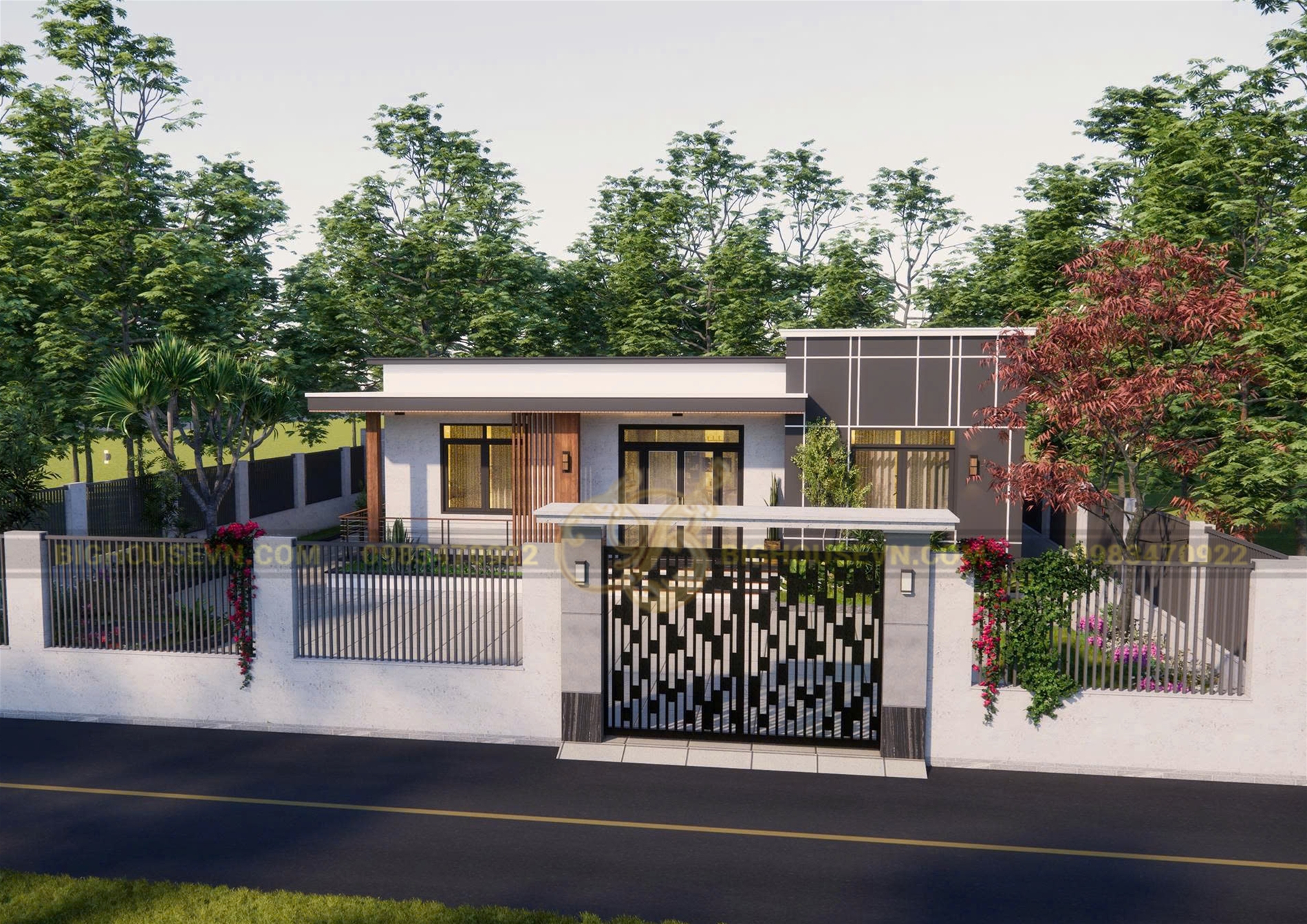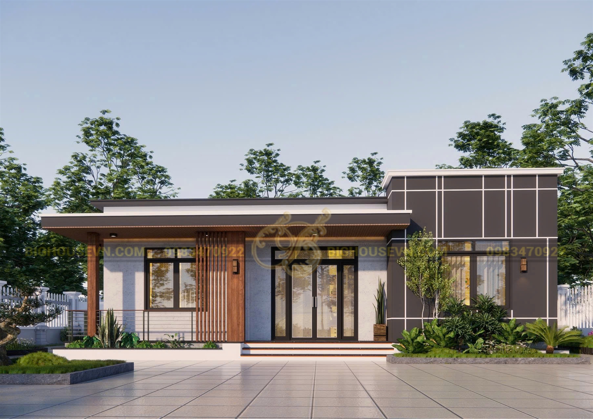Phối cảnh 3D nhà cấp 4 hiện đại rộng 12m: