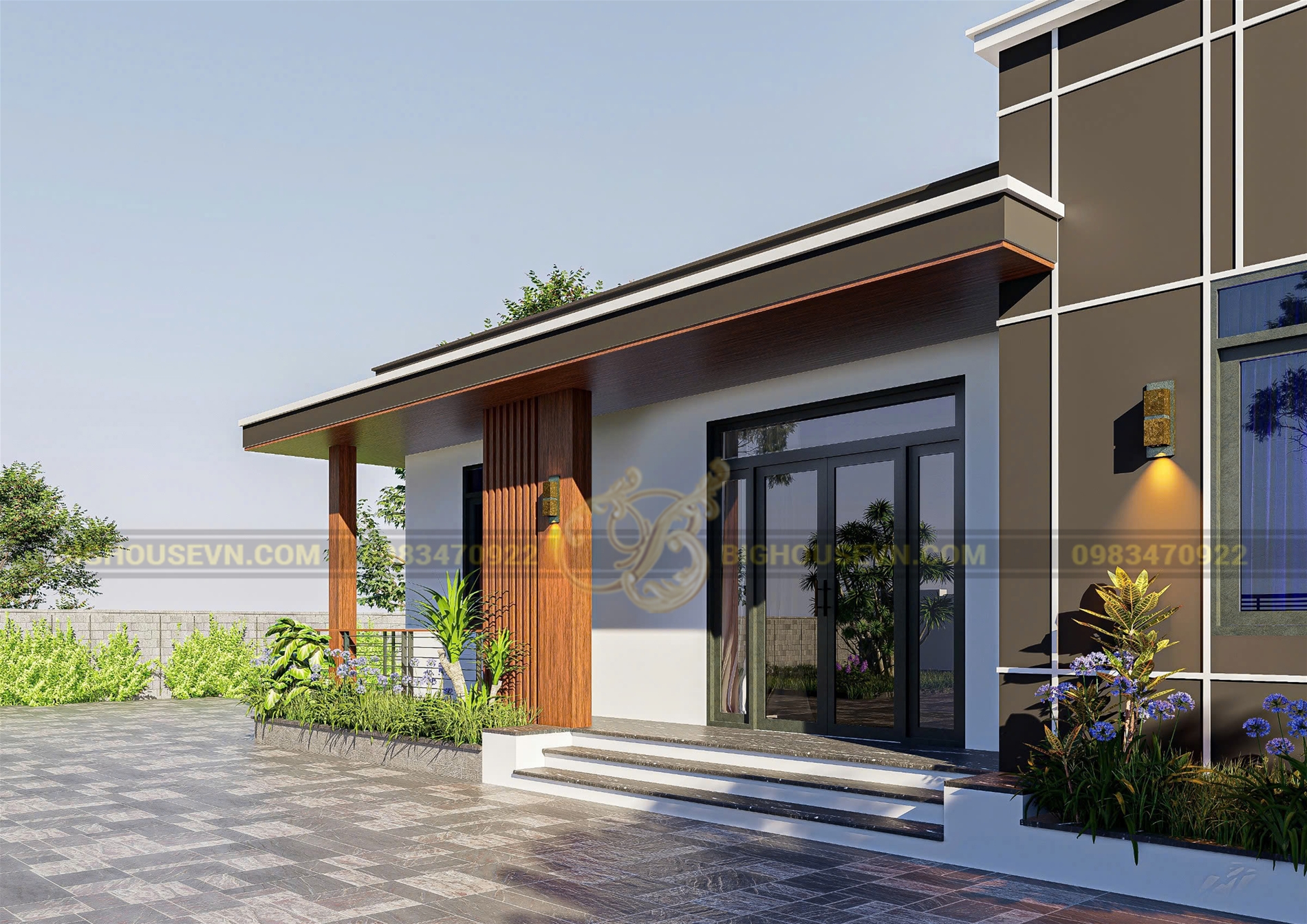 Phối cảnh 3d ngoại thất nhà cấp 4 hiện đại 104m2