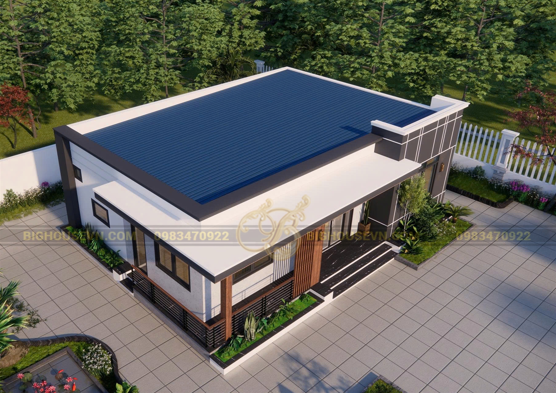 Phối cảnh trên cao nhà cấp 4 hiện đại 12x9m