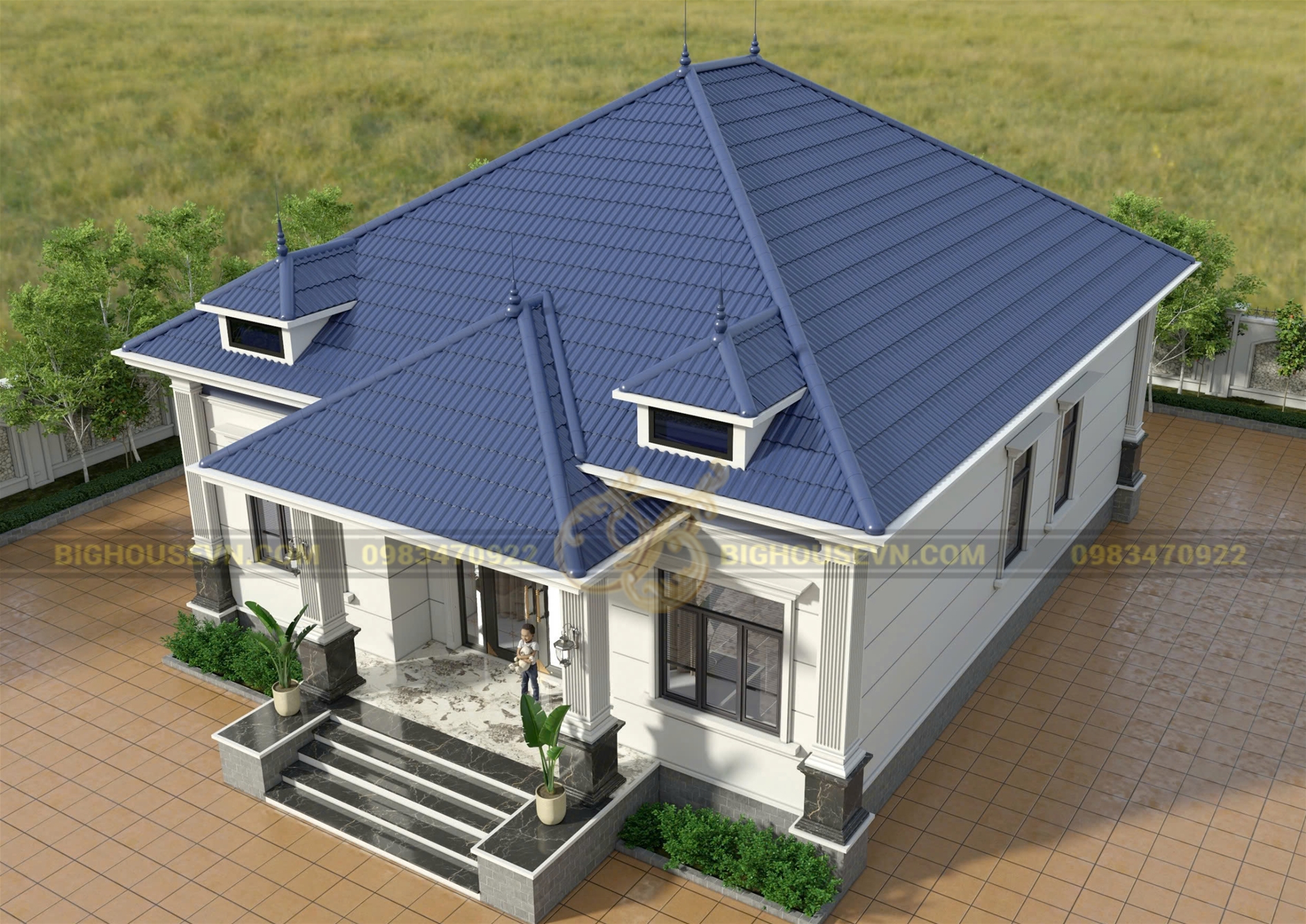 Phối cảnh trên cao nhà cấp 4 mái nhật 11x12,5m