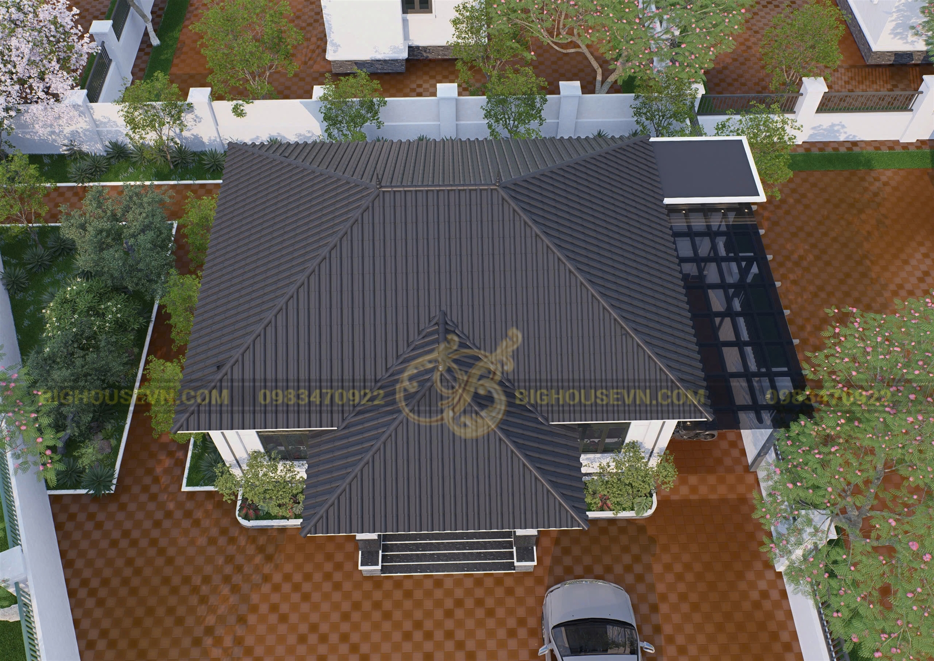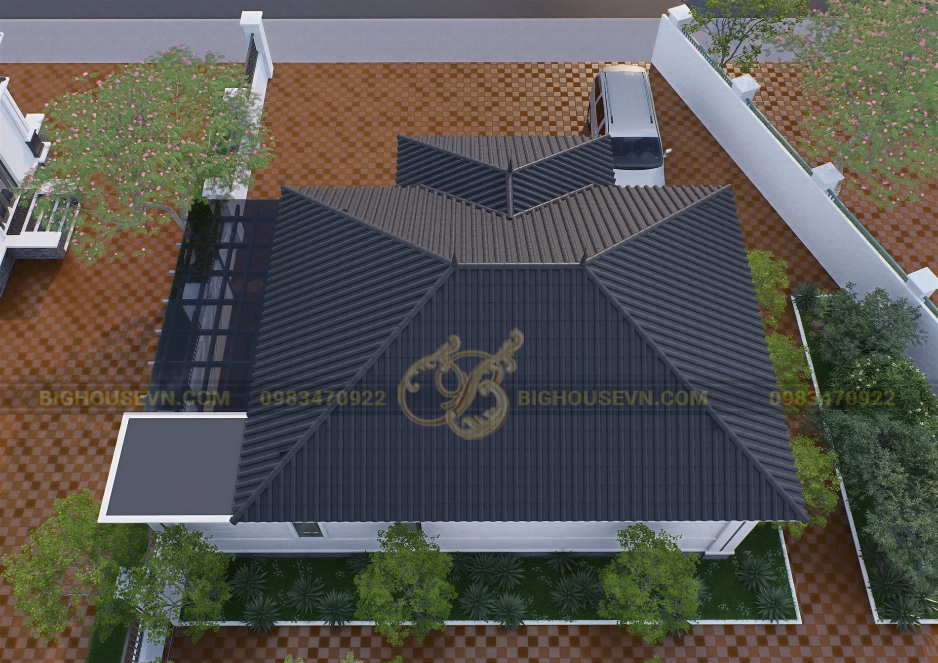 Phối cảnh trên cao nhà mái nhật 1 tầng 15x9m