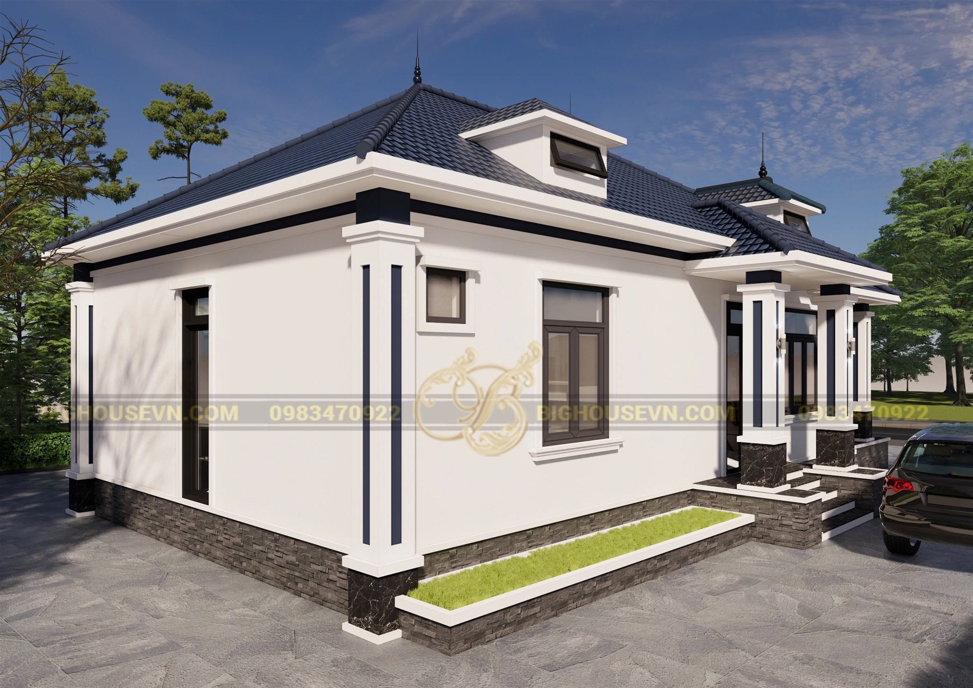 Phối cảnh mặt bên nhà cấp 4 mái nhật rộng 8,2m