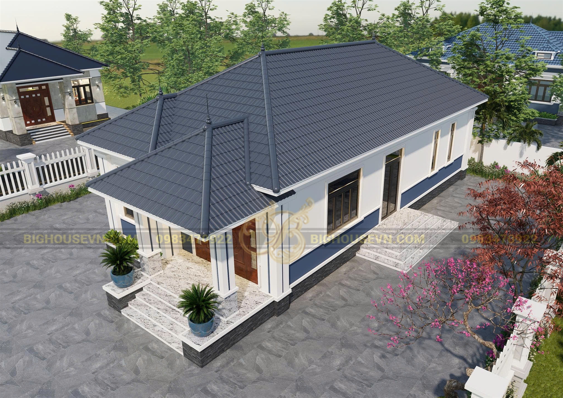 Phối cảnh trên cao nhà 1 tầng mái nhật rộng 8,2m