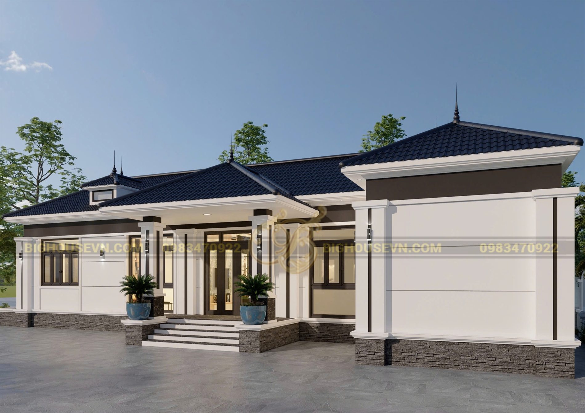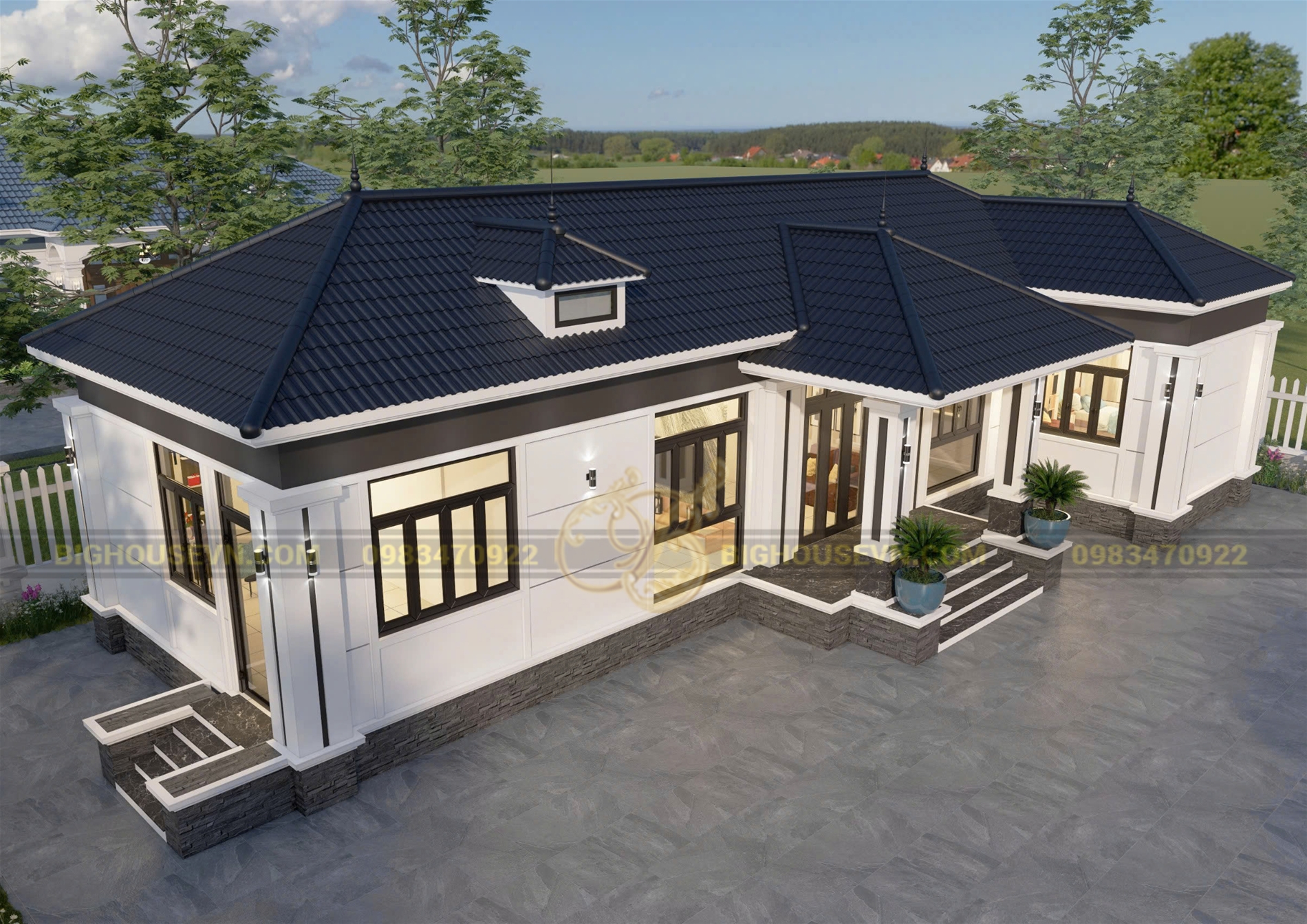 Phối cảnh nhà cấp 4 ngang mái nhật chữ L 180m2