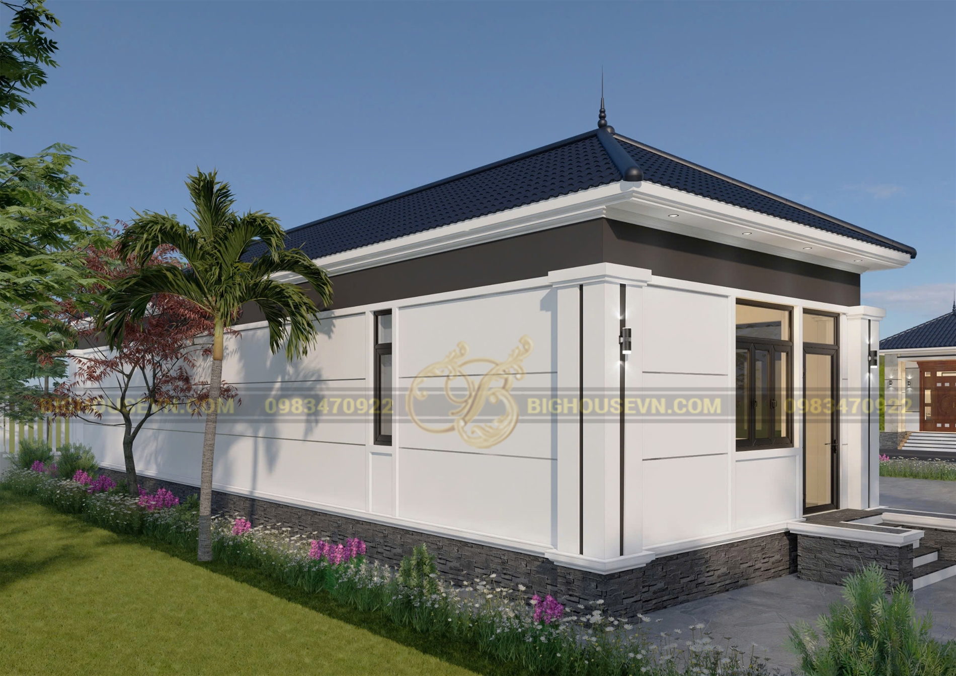 Phối cảnh 3D nhà cấp 4 mái nhật rộng 20m: