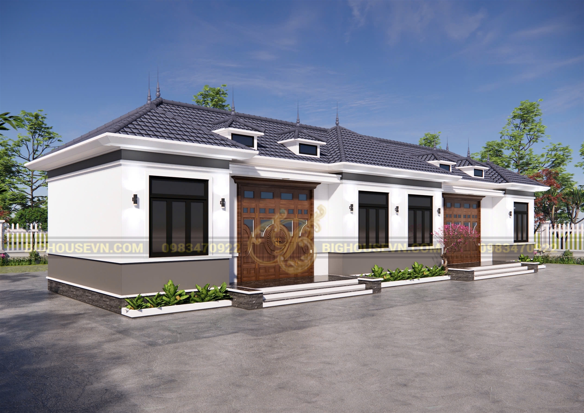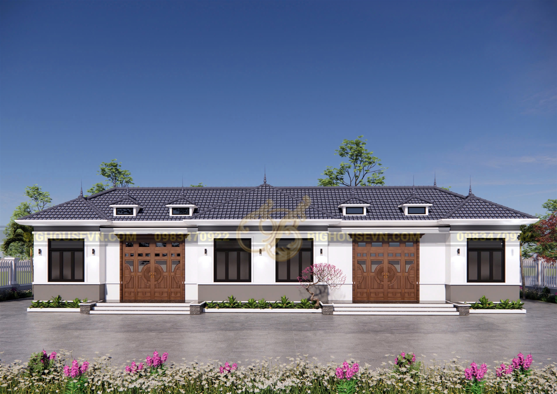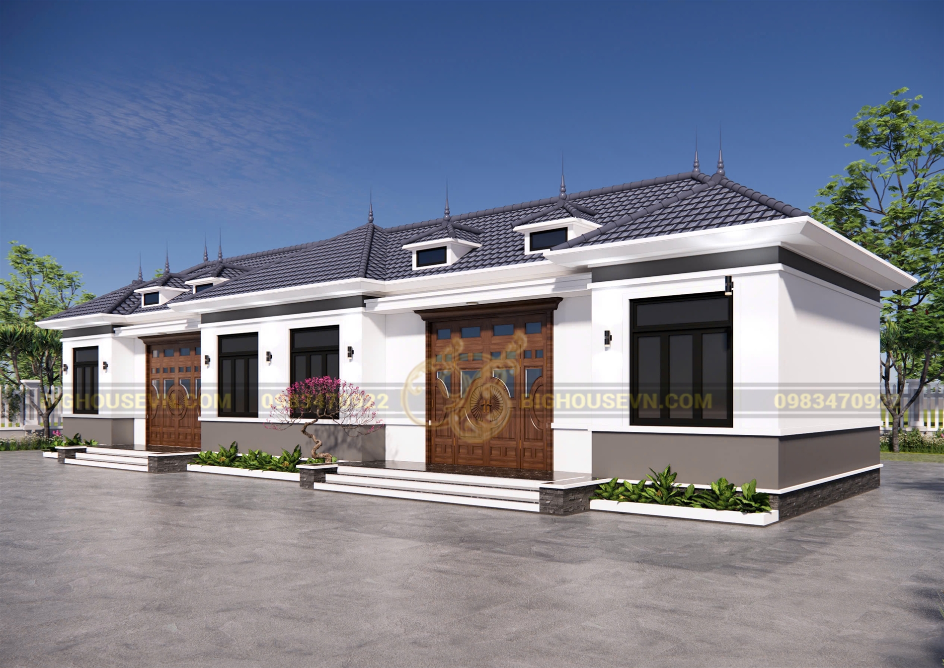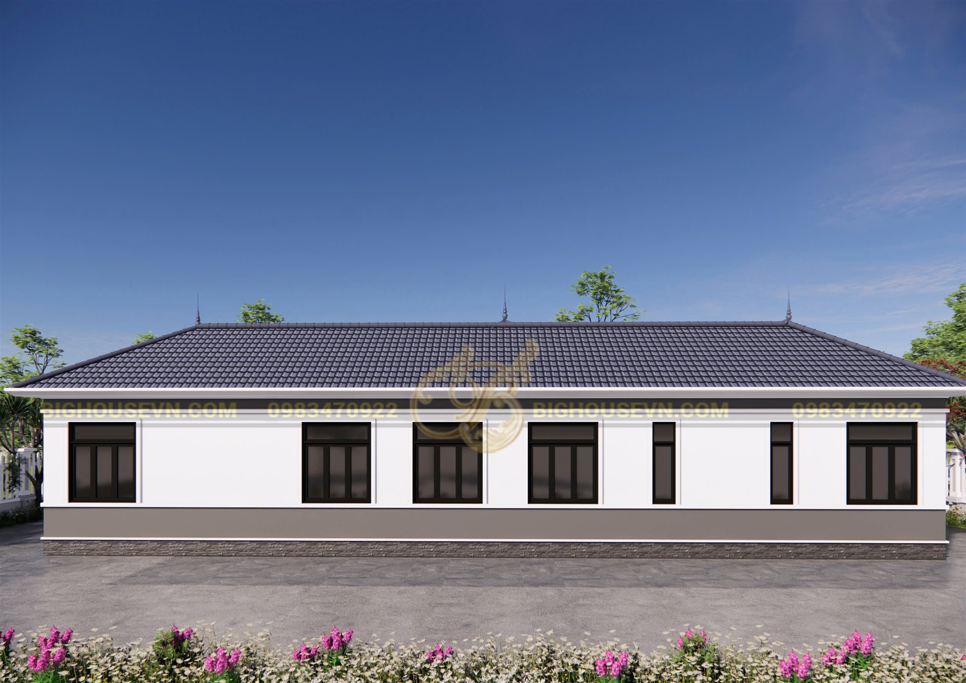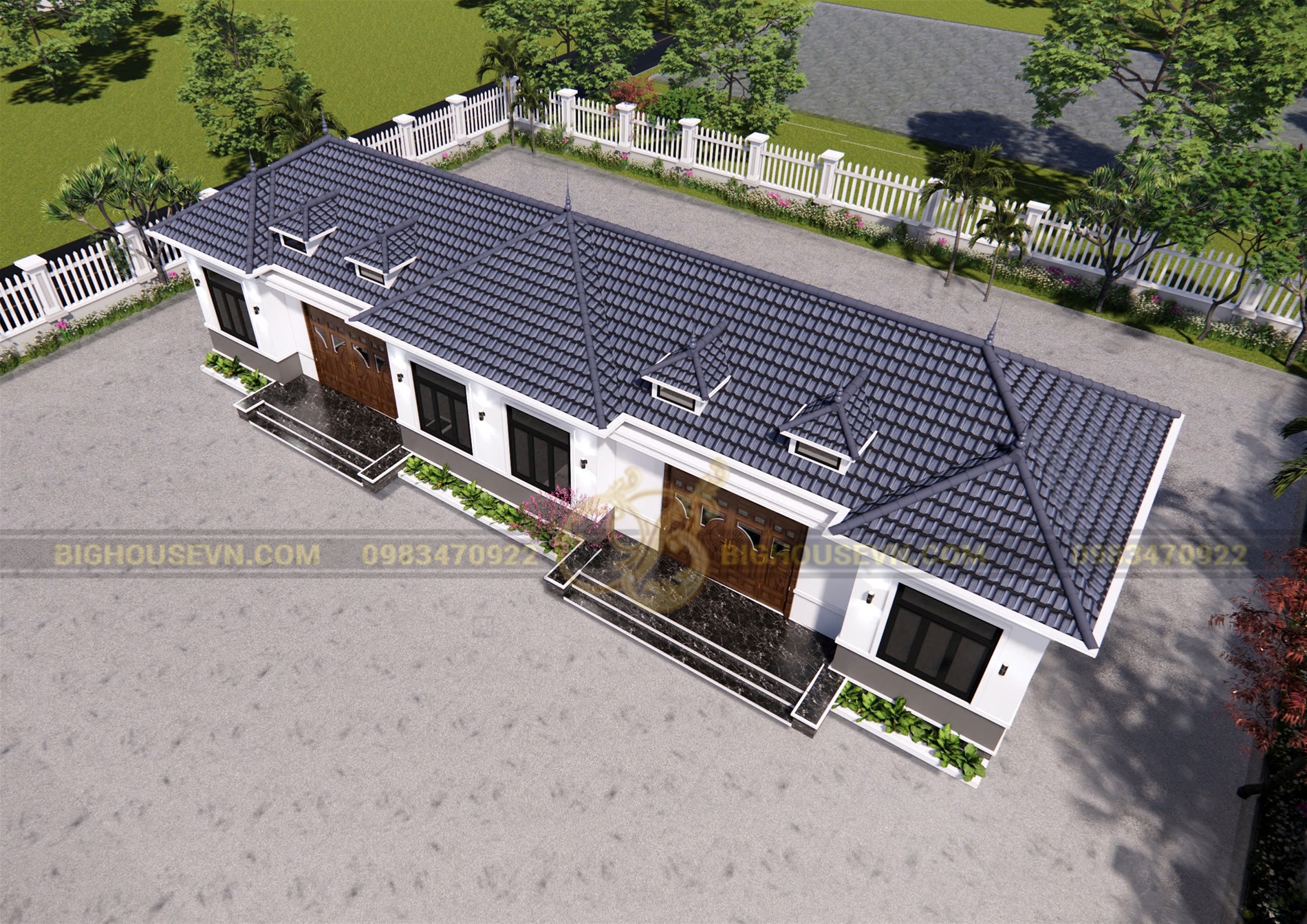 3d ngoại thất nhà cấp 4 mái nhật ngang rộng 23m