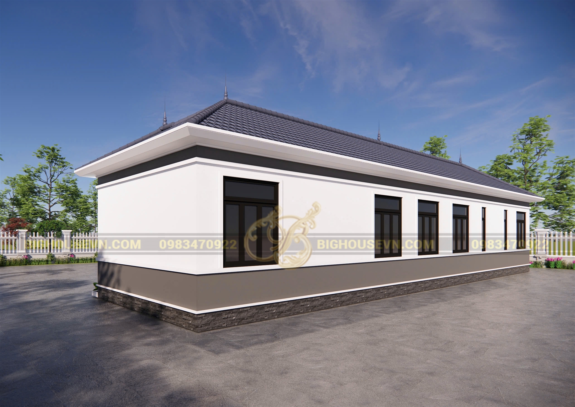 Phối cảnh 3D nhà cấp 4 mái nhật rộng 23,1m:
