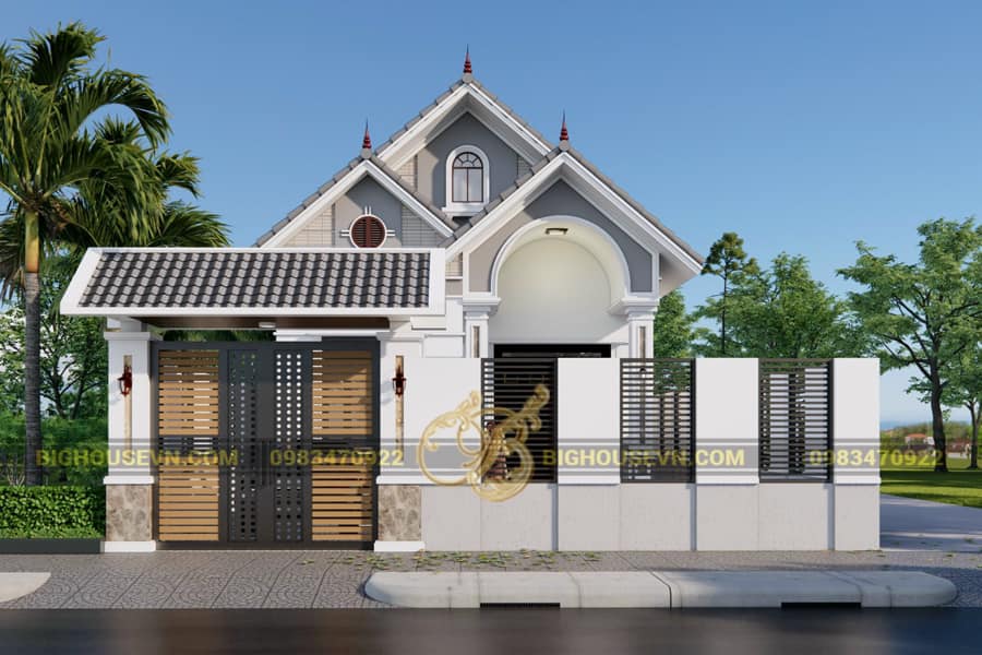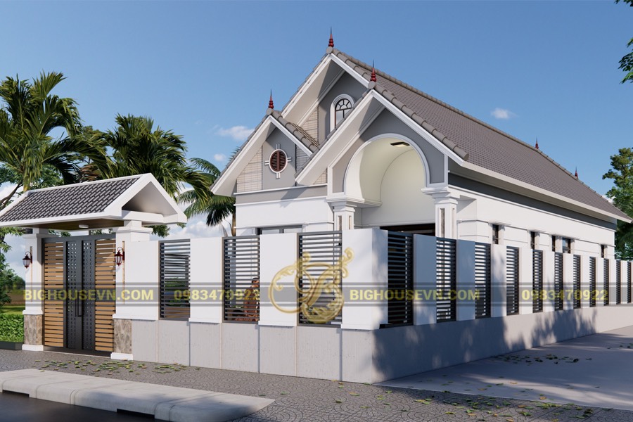 Phối cảnh 3d nhà cấp 4 mái thái có tường rào