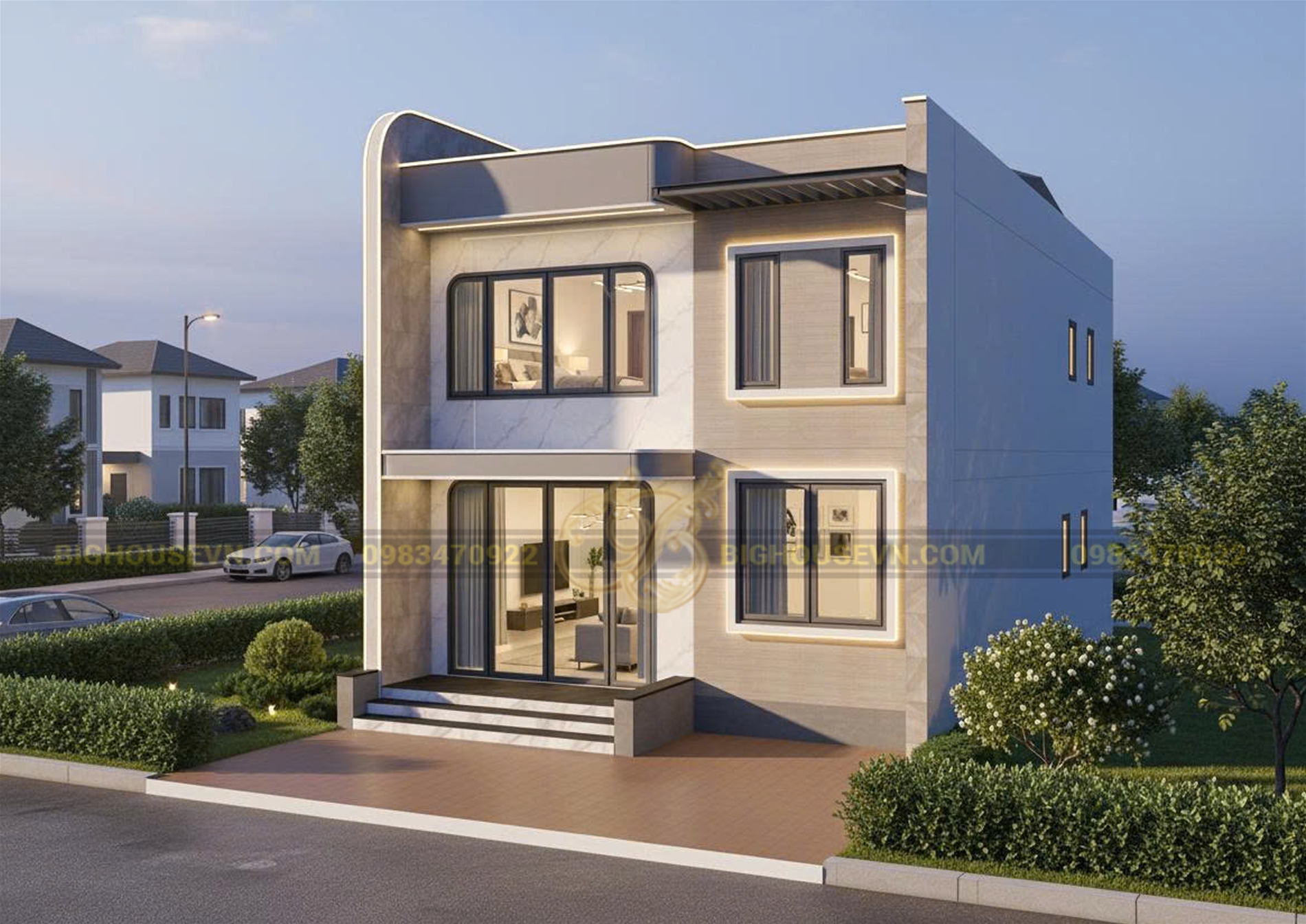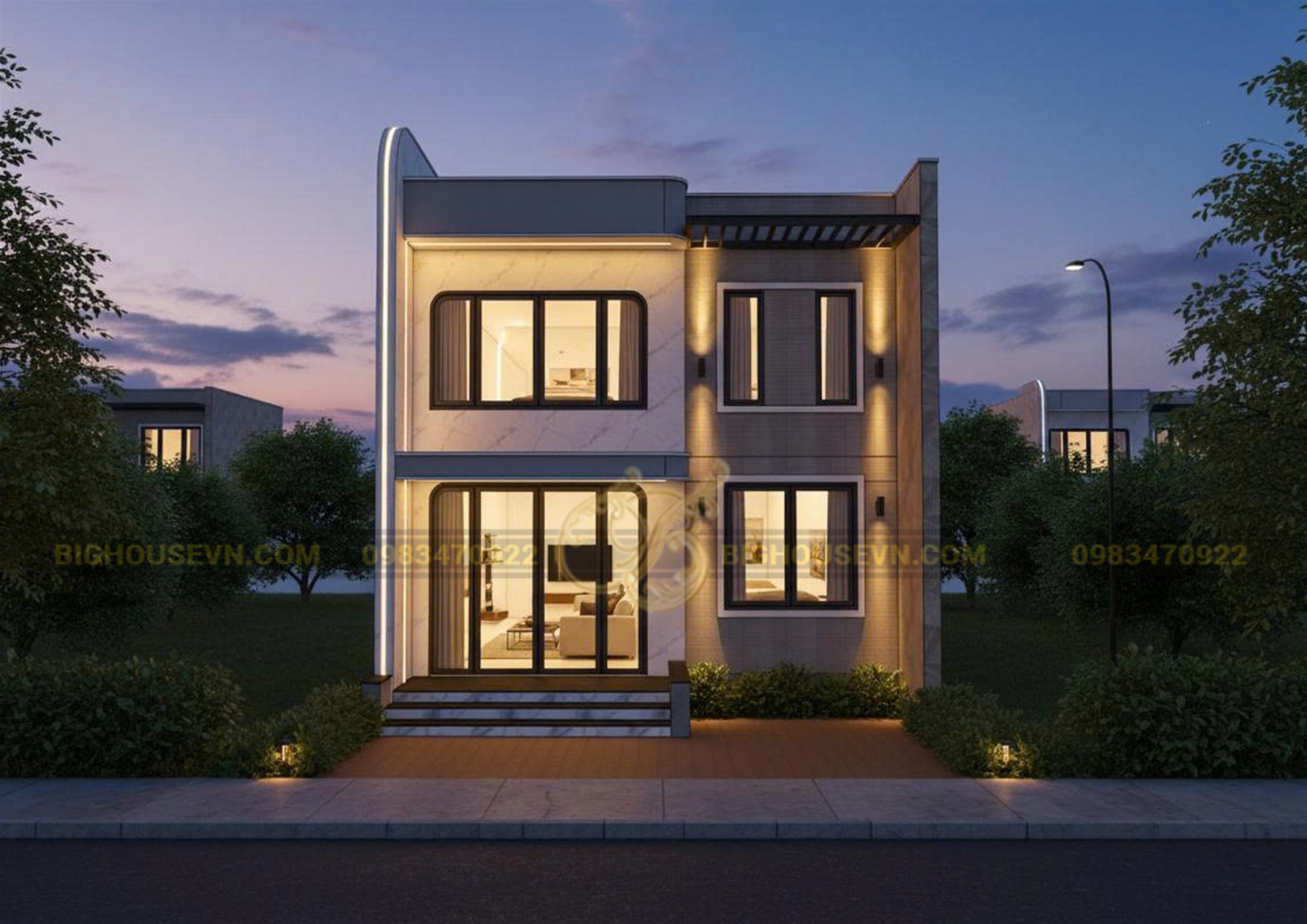 Mặt tiền nhà gác lửng hiện đại rộng 7m