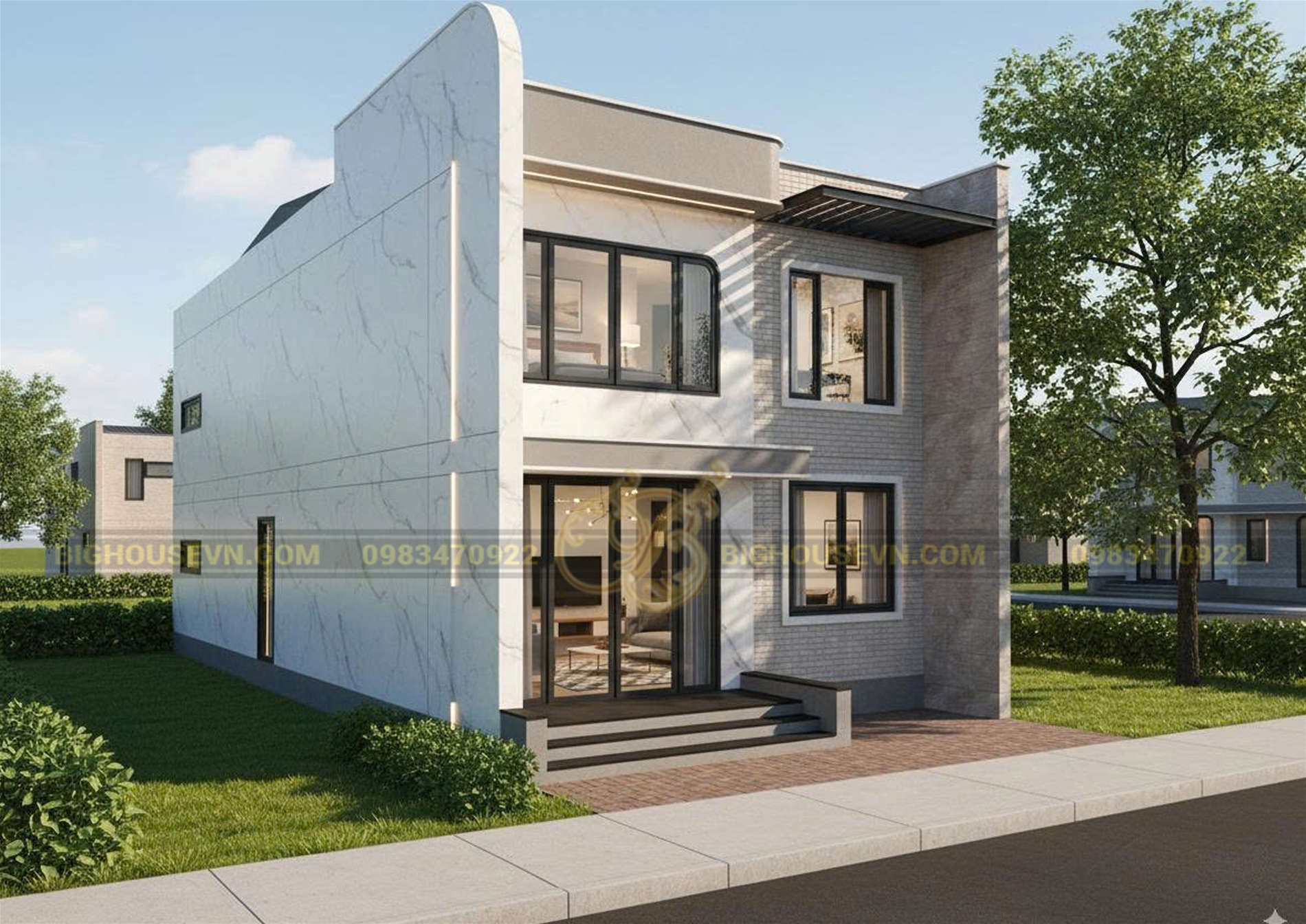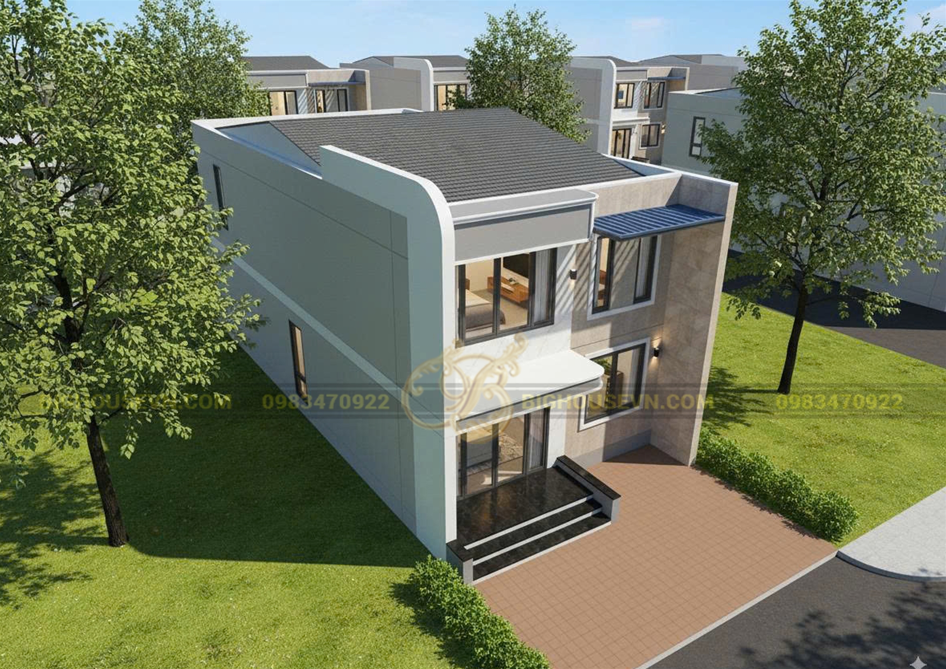 Phối cảnh mặt bên nhà gác lửng hiện đại 126m2