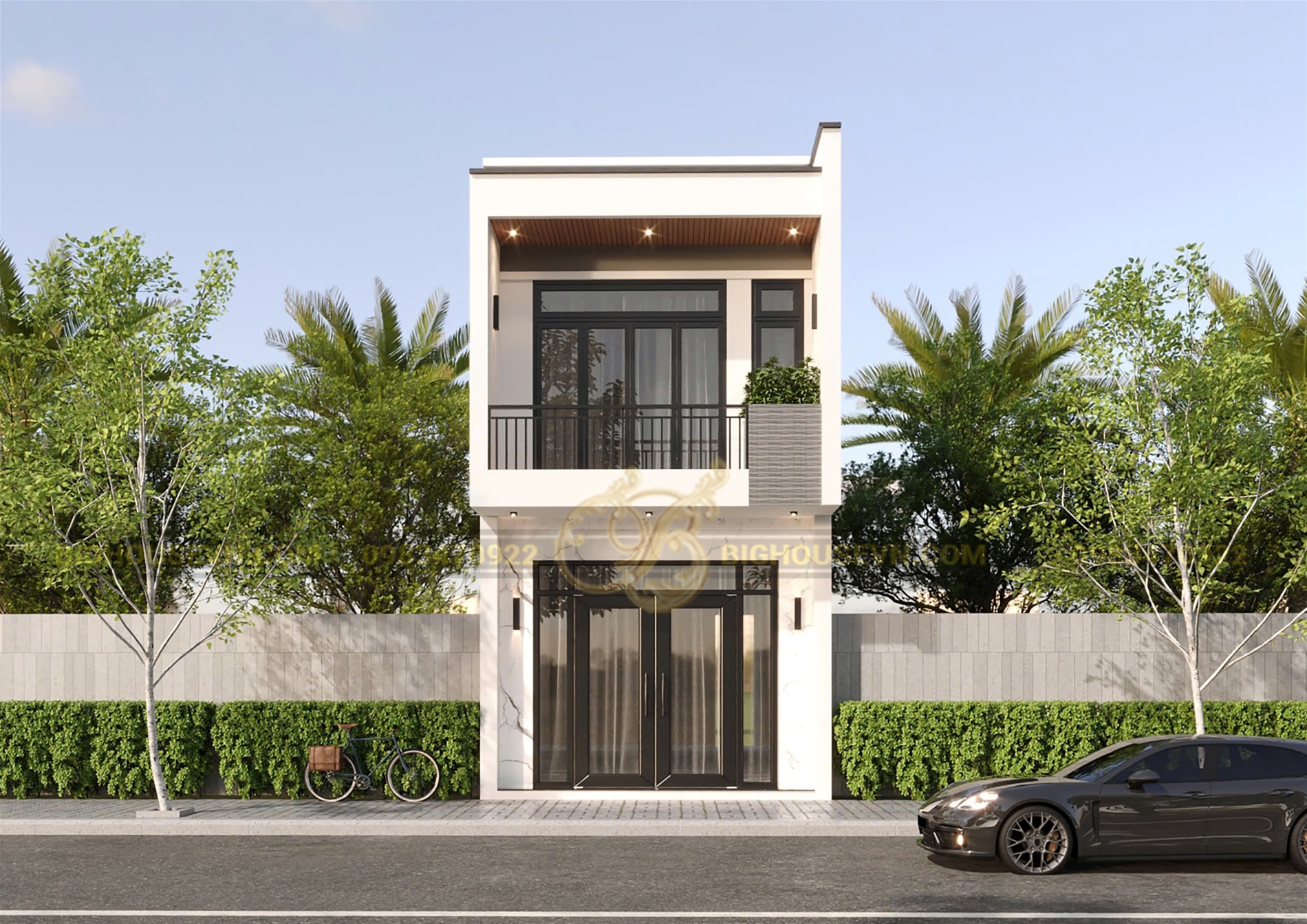 Phối cảnh 3D nhà 2 tầng mái bằng mặt tiền 4,55m: