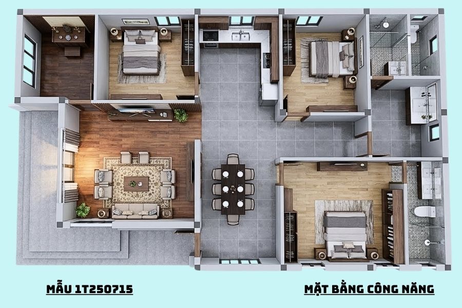 Mặt bằng công năng NHÀ VƯỜN CẤP 4 MÁI NHẬT 3 phòng ngủ 170m2 - 1T250715