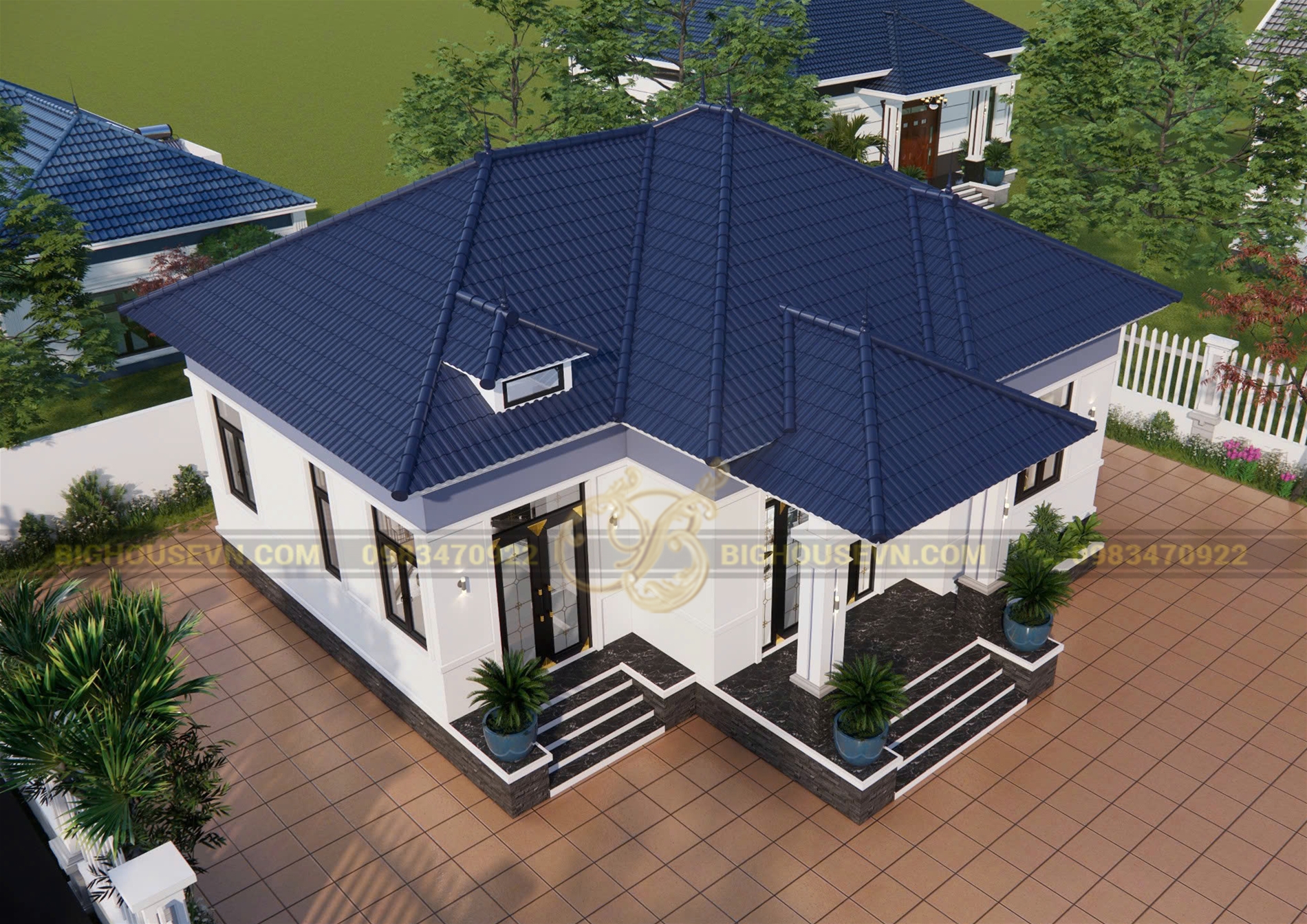 Phối cảnh trên cao nhà vườn cấp 4 mái nhật 118m2