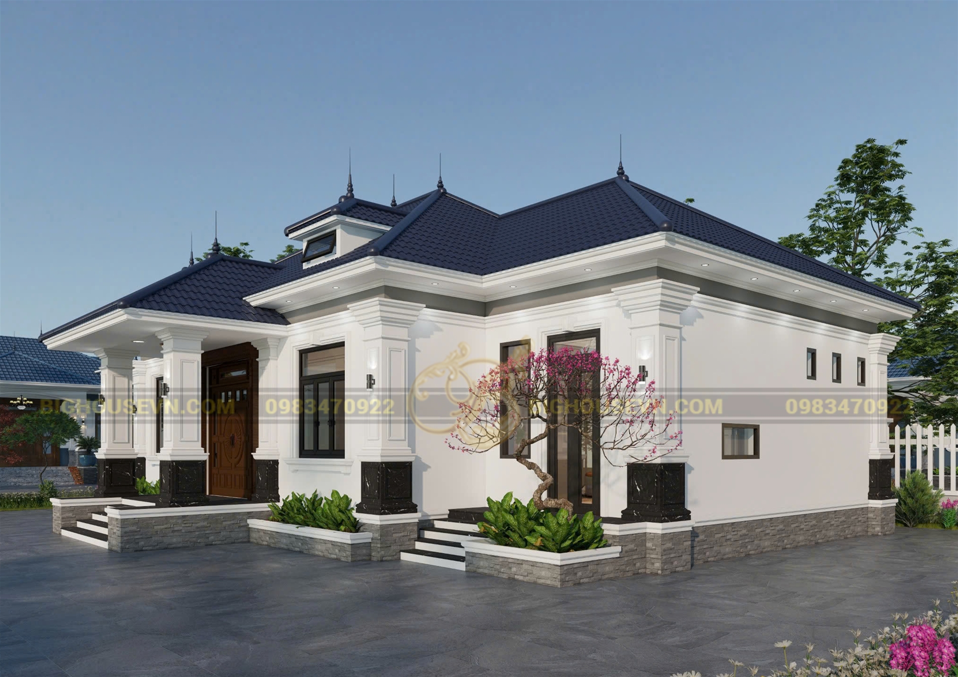 Phối cảnh 3D nhà cấp 4 mái nhật rộng 16m: