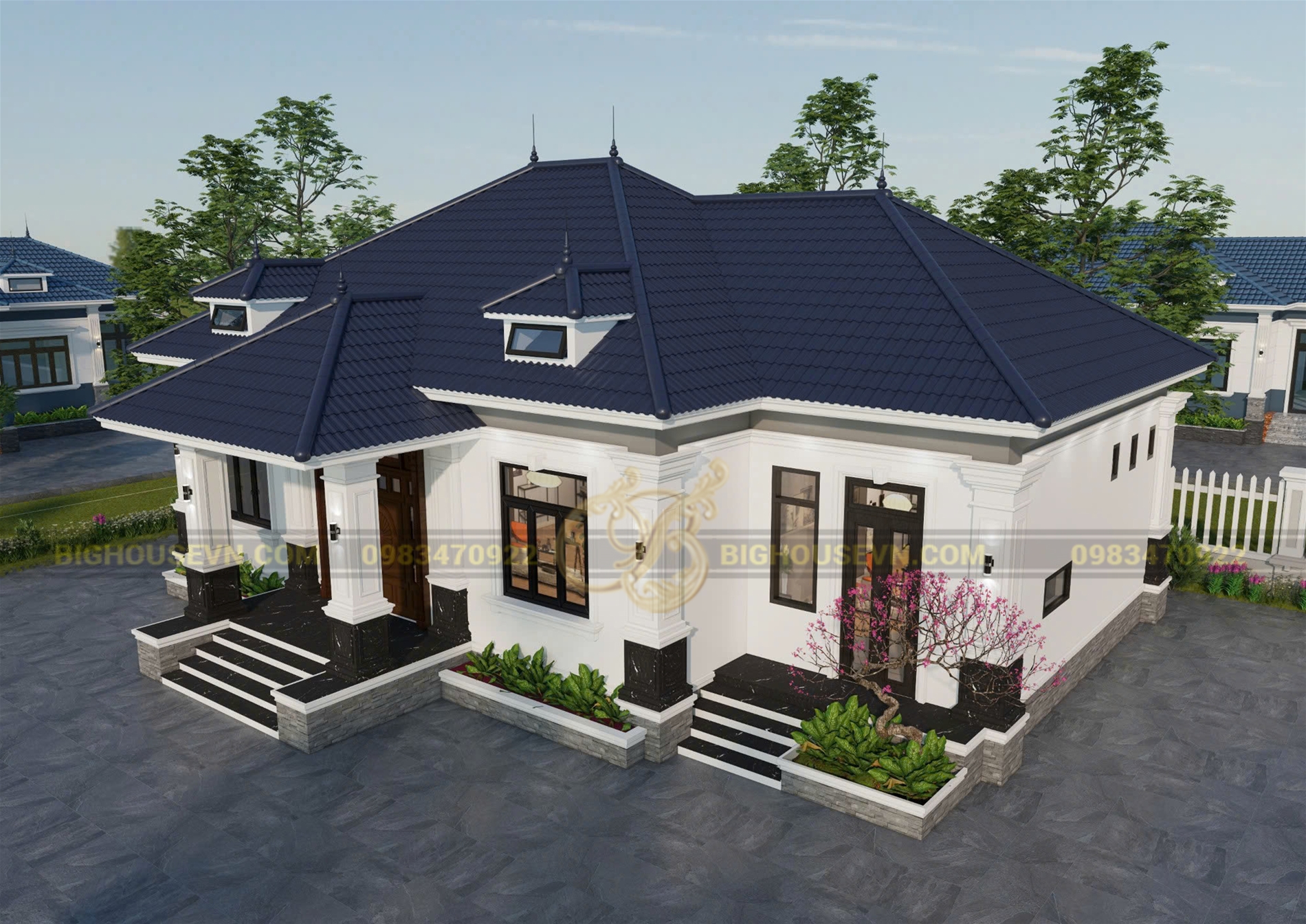 Phối cảnh trên cao nhà cấp 4 mái nhật 151m2