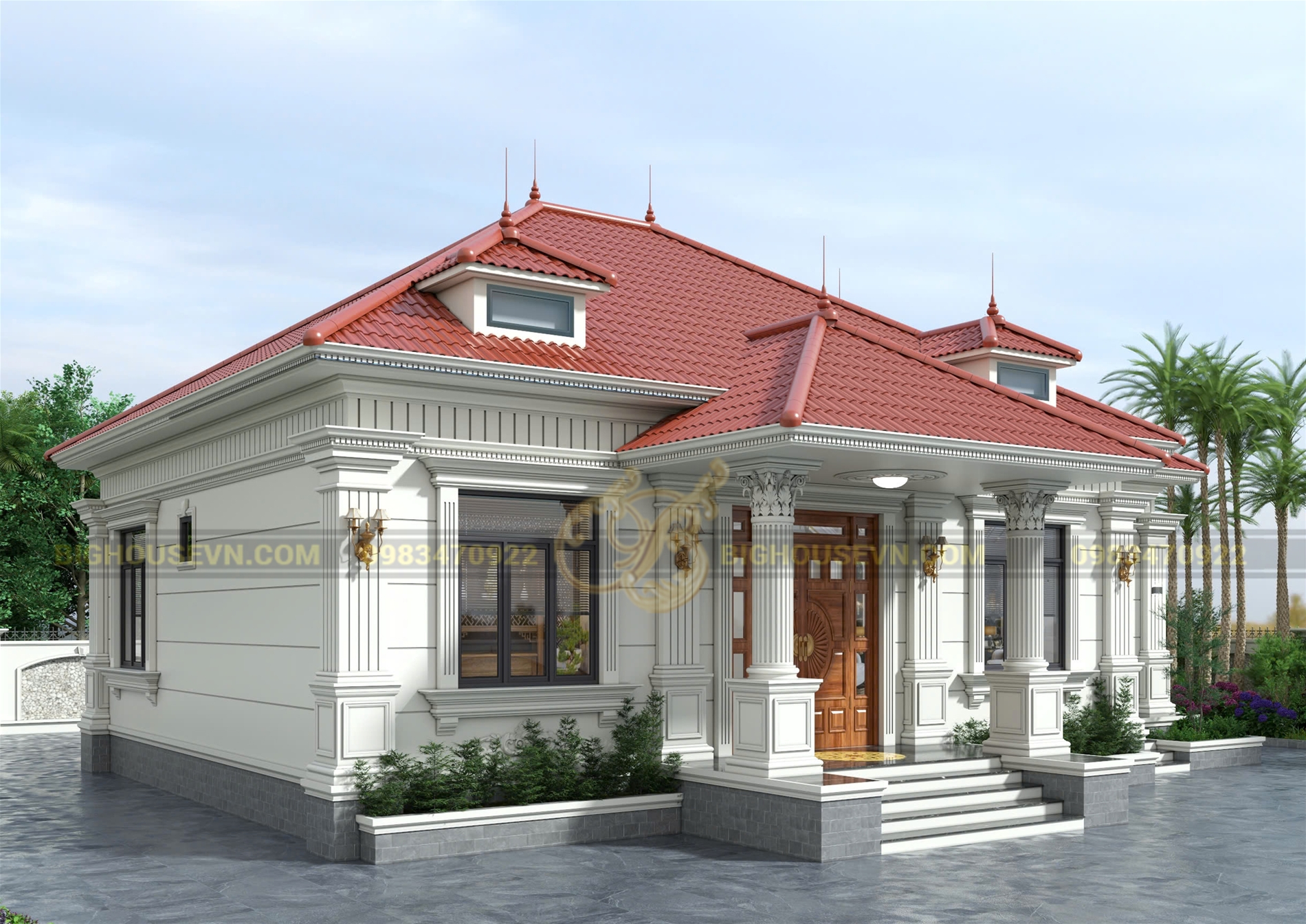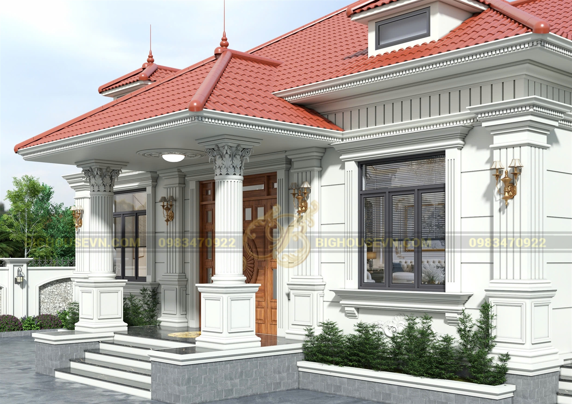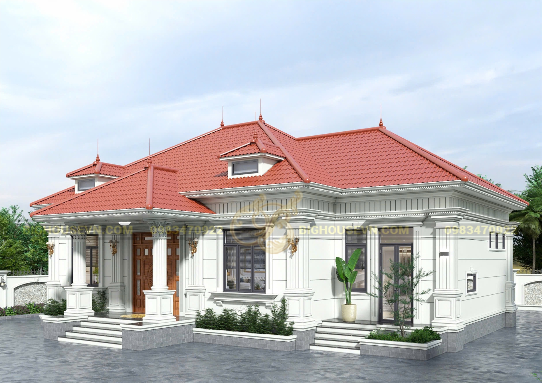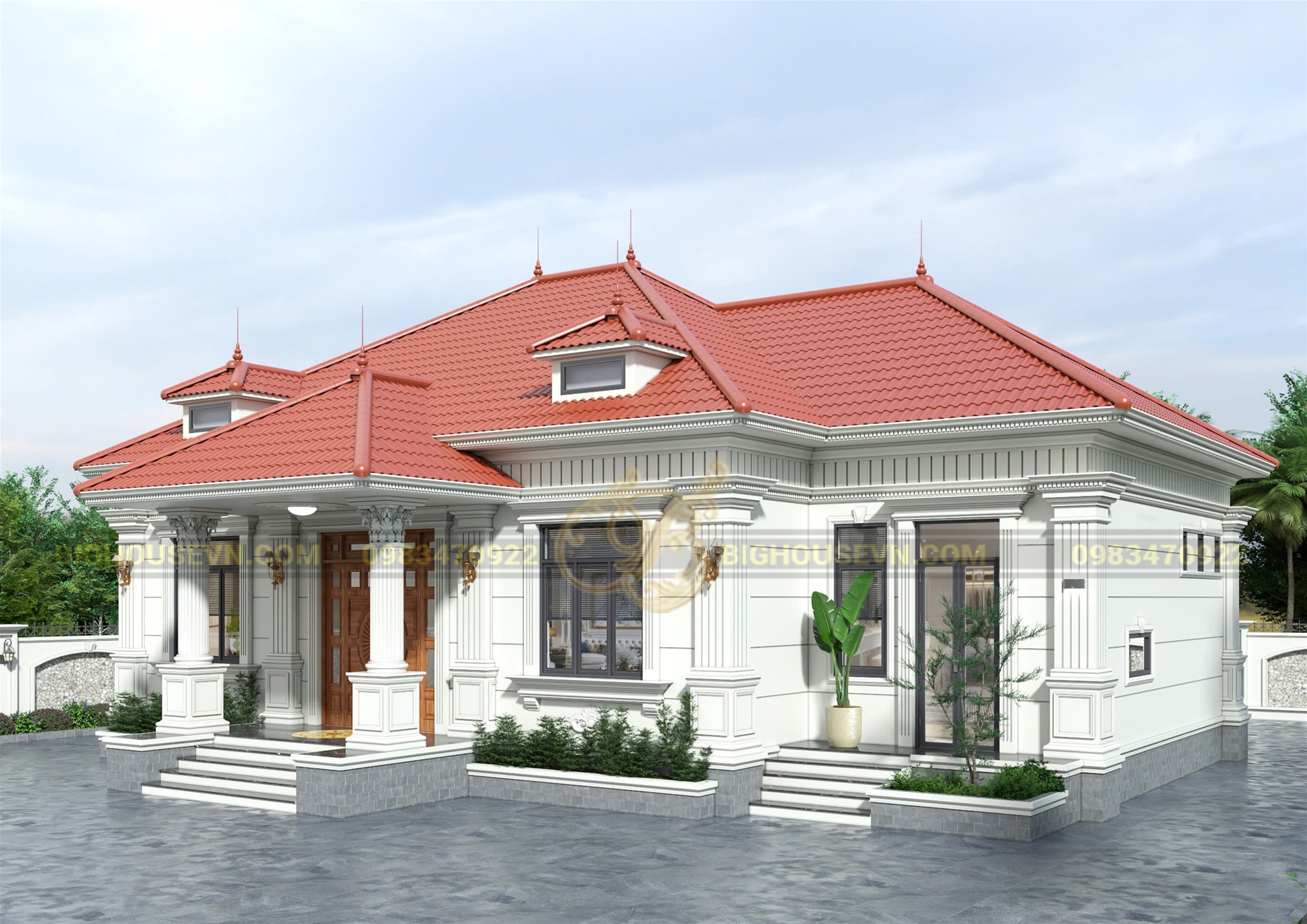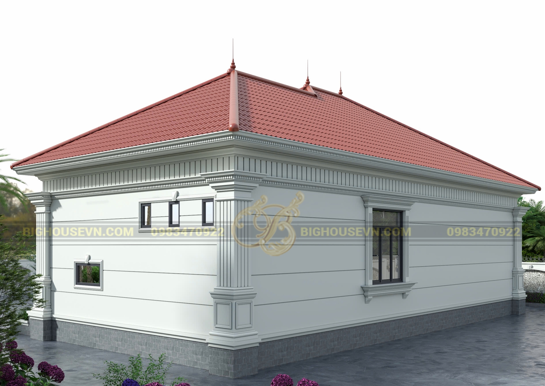 Thiết kế 3d nhà cấp 4 tân cổ 3 ngủ rộng 16m