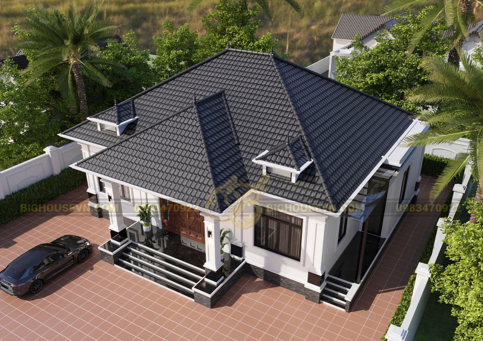 Phối cảnh trên cao nhà cấp 4 mái nhật 14x10m