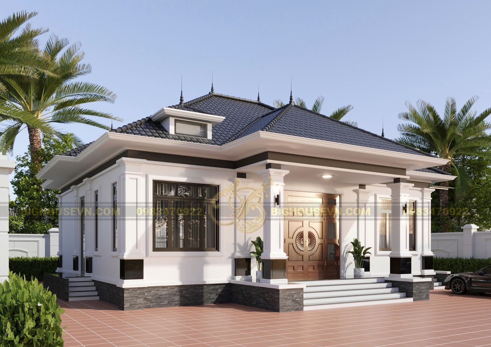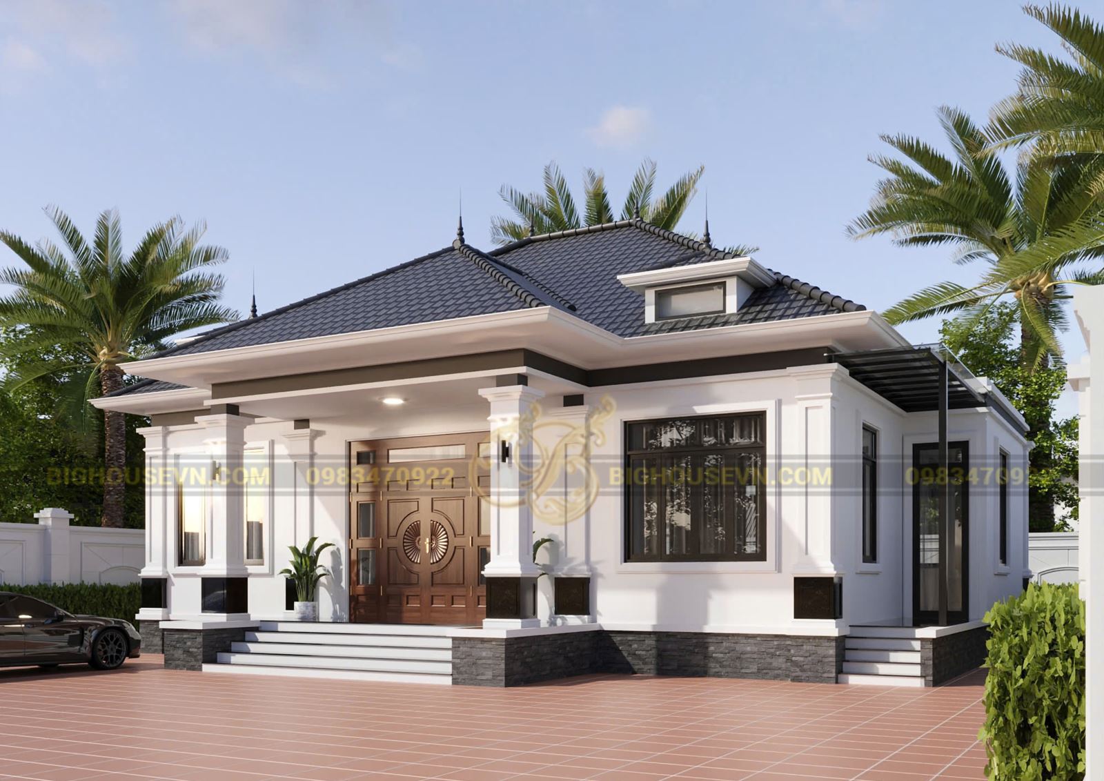 Thiết kế 3dngoaij thất nhà 1 tầng mái nhật rộng 14m