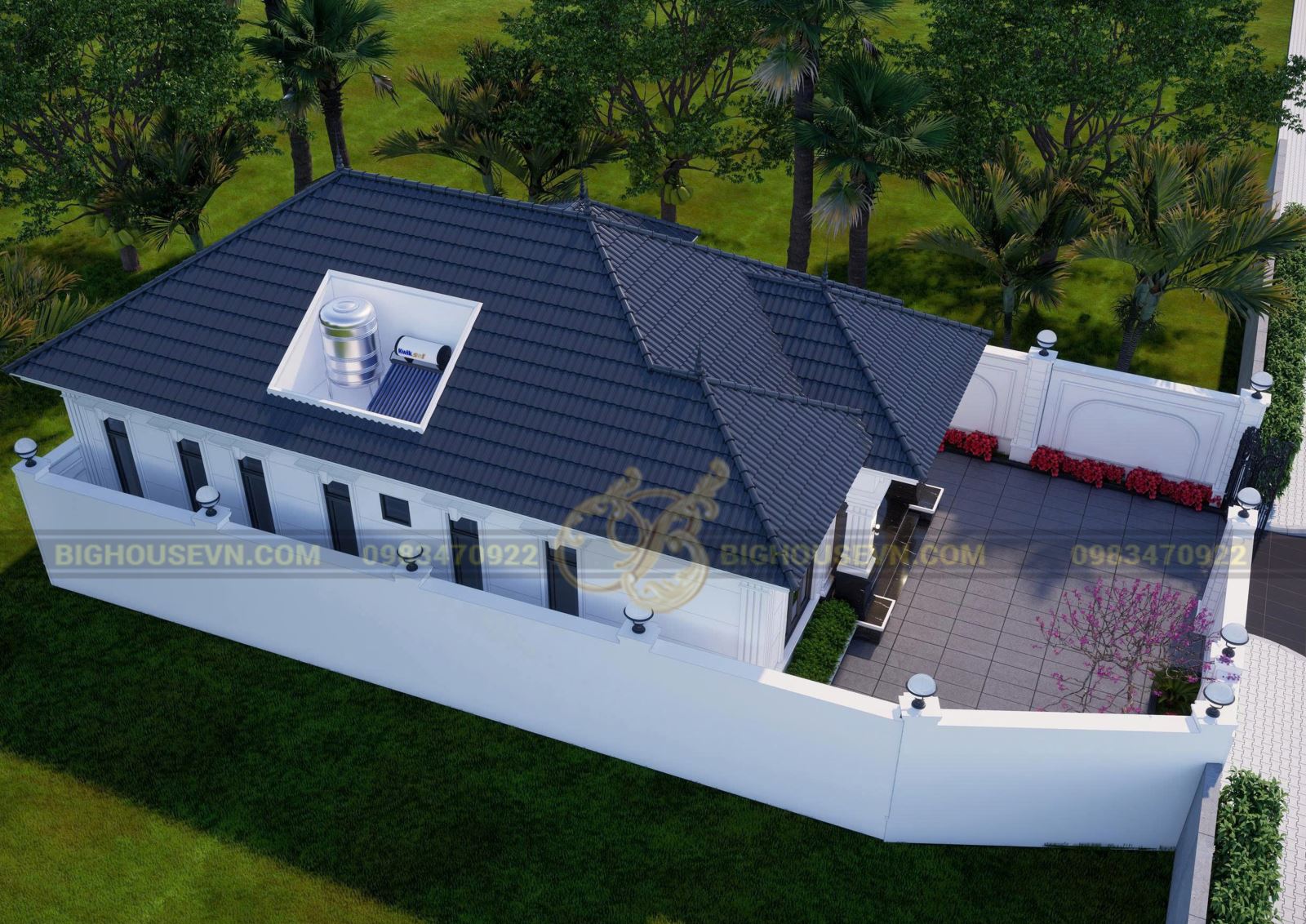 3d phối cảnh nhà cấp 4 mái nhật 8,25x14,3m
