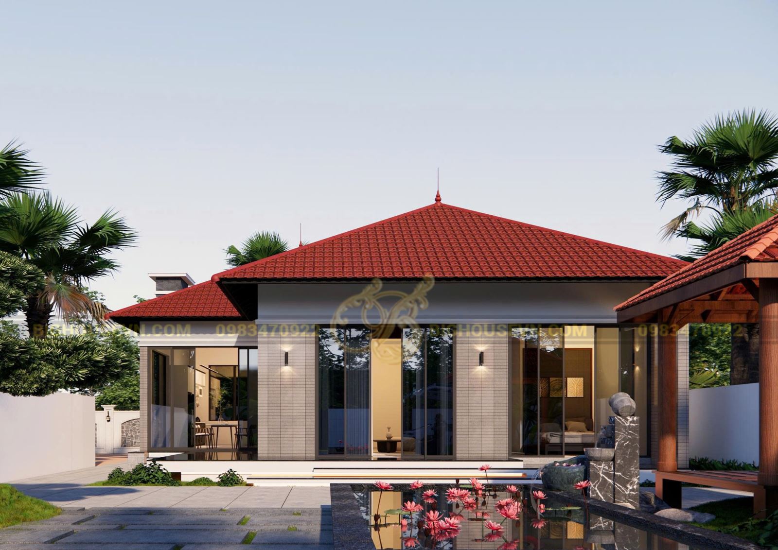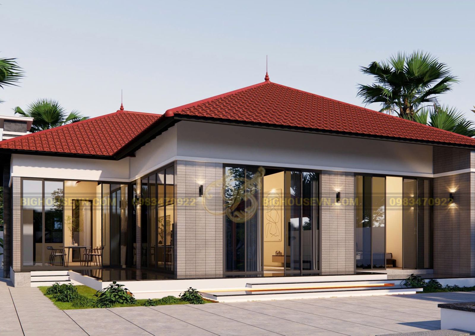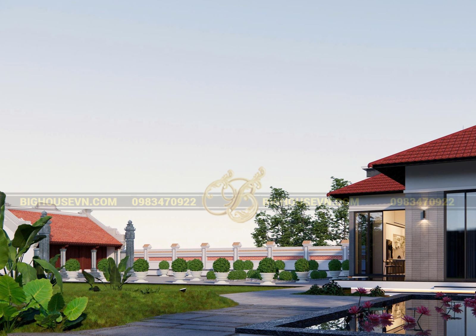 Thiết kế phối cảnh đẹp nhà vườn mái nhật chữ L hiện đại